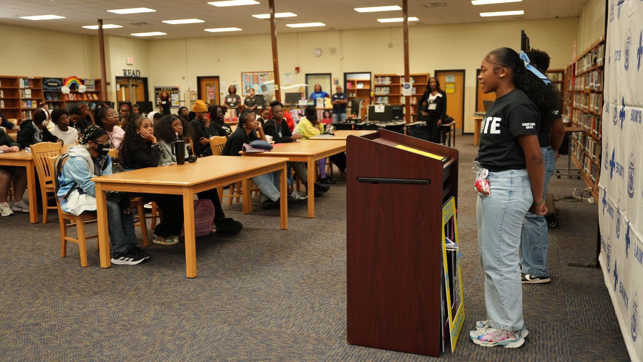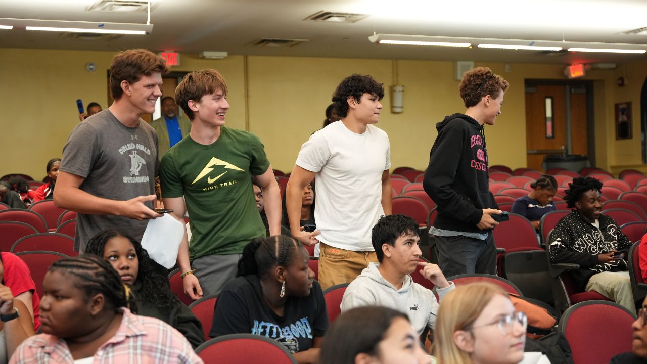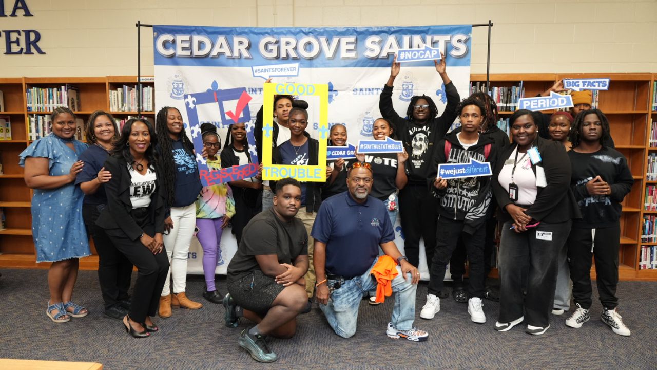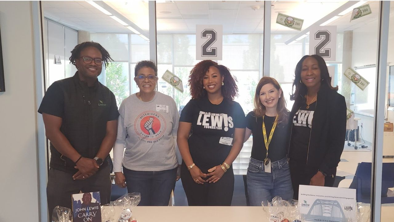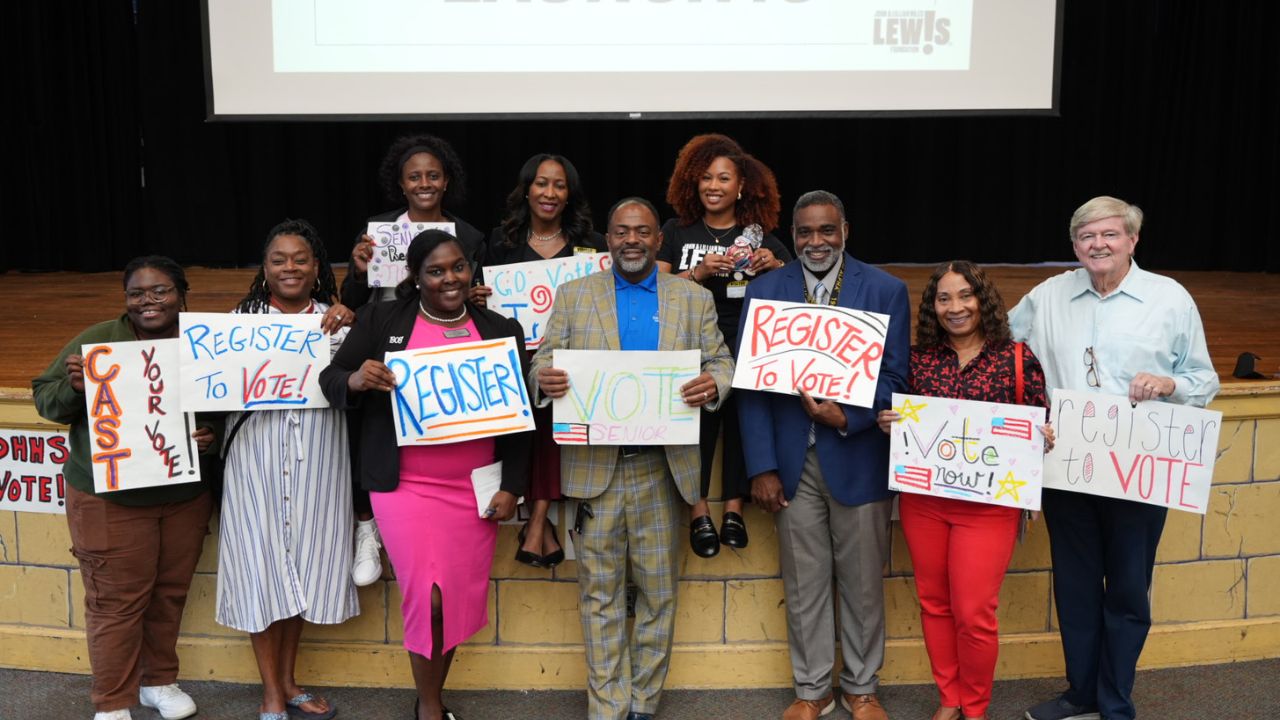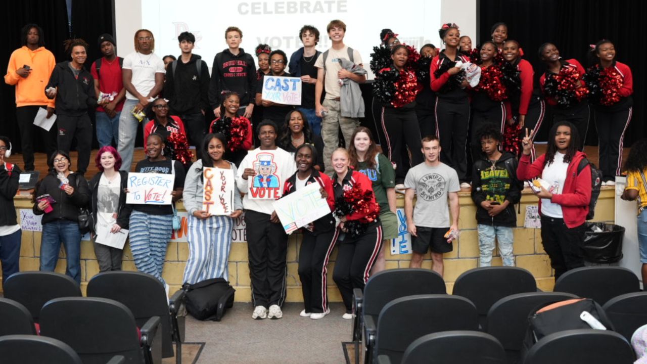 After a successful pilot of our B.R.I.D.G.E Program last year—highlighted by a voter registration event at the John Lewis “Empathy” sculpture in Decatur—we launched our 2025 efforts with Cedar Grove High School, Charles R. Drew Charter School, and Druid Hills High School.
